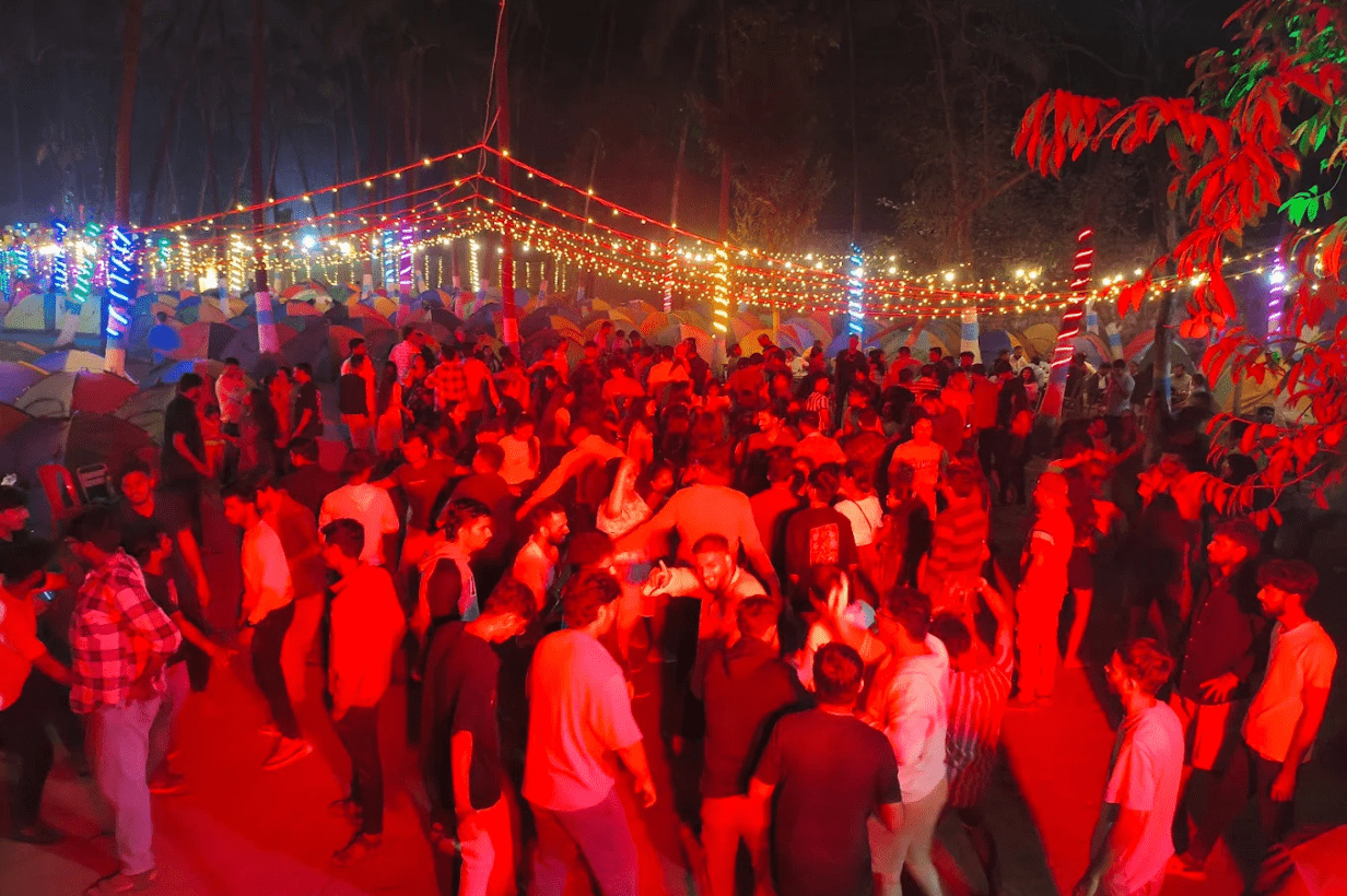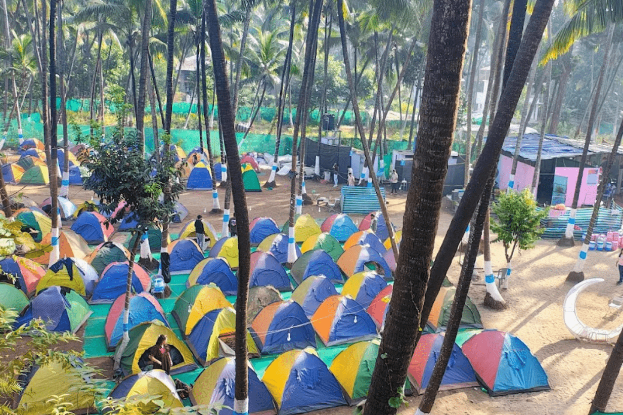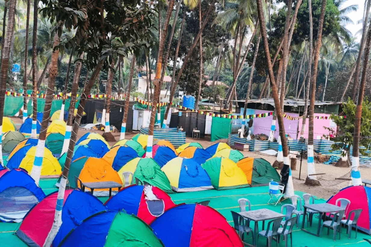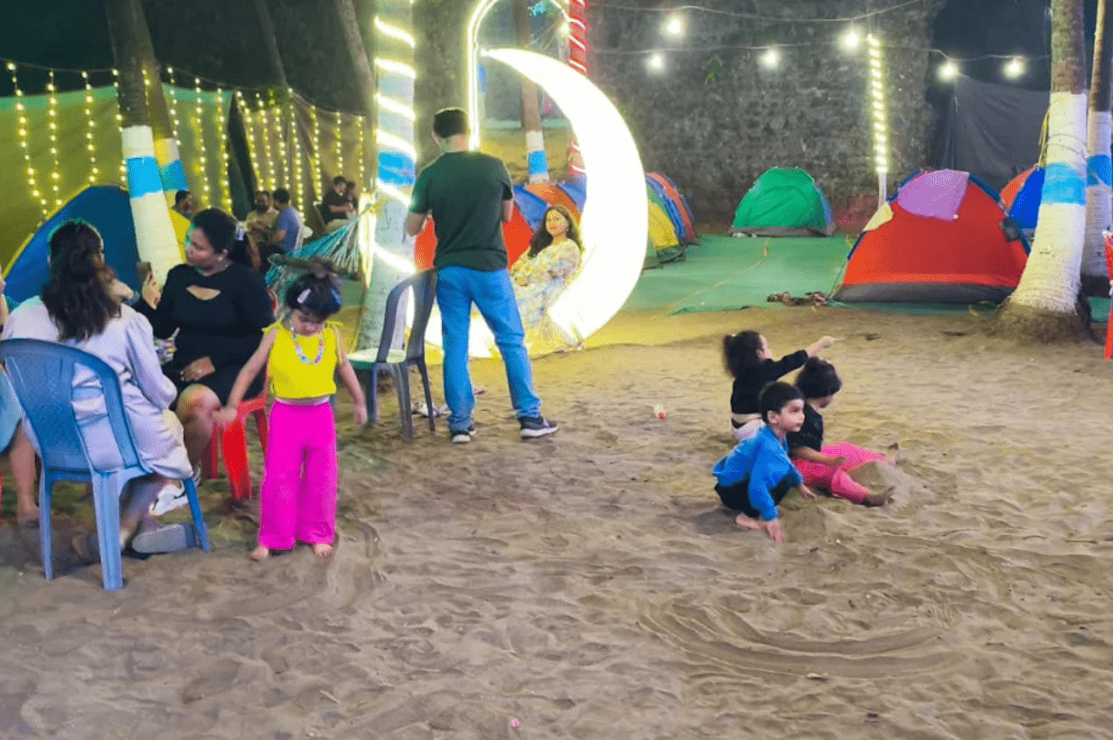The campsite is nestled on the quiet, clean coastline of Revdanda, offering peaceful beach views, soft waves, and serene surroundings far away from the city crowd.