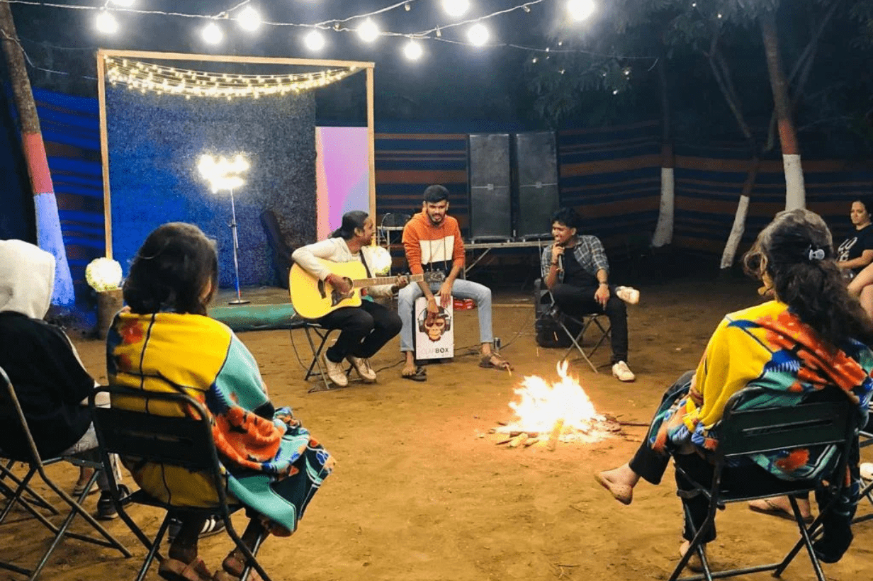 Our plans are economical and transparent for travellers looking for Alibaug camping price, Alibaug beach camping price, or flexible Alibaug camping packages. We also offer smooth Alibaug camping booking assistance and customizable setups for birthdays, anniversaries, and group celebrations. For romantic travelers, our special Alibaug camping for couples package comprises cozy seating, private tents, sunset views, and candlelight vibes by the beach.